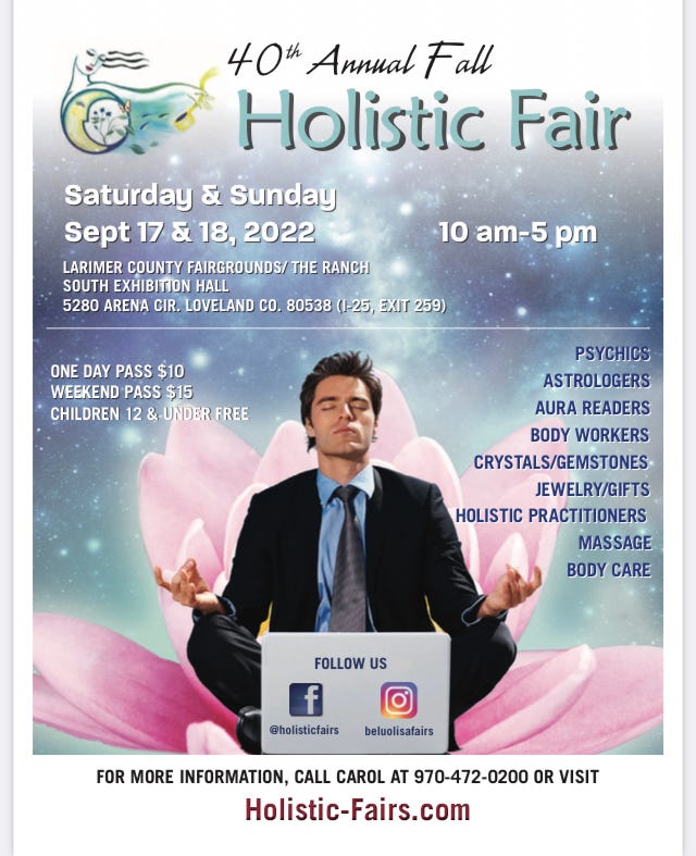 I’m really excited this week. On Sunday I have a presentation at the Holistic Fair in Loveland, Colorado. I’ve entitled it “The Power of One is.”